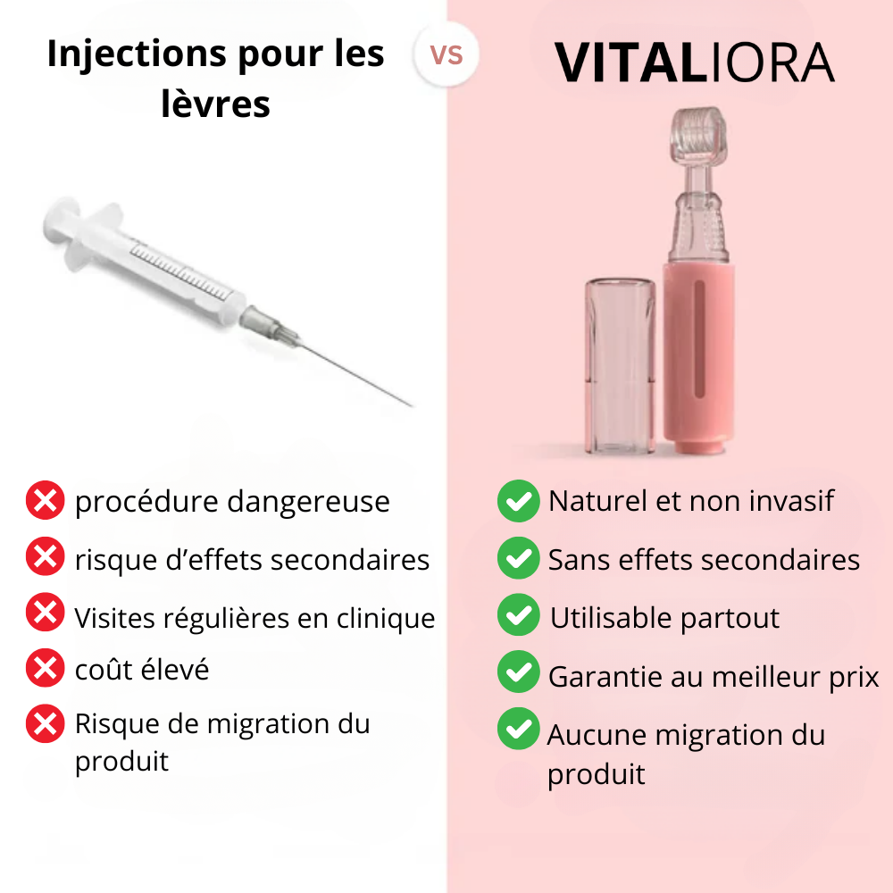 Dites adieu aux procédures invasives et risquées des injections pour les lèvres. Avec Vitalips, optez pour une solution naturelle, sans danger et sans effets secondaires. Facile à utiliser et accessible, cet outil vous permet de sublimer vos lèvres où que vous soyez, à un prix abordable, tout en garantissant un résultat sans migration du produit. Offrez-vous des lèvres pulpeuses en toute sécurité et simplicité.